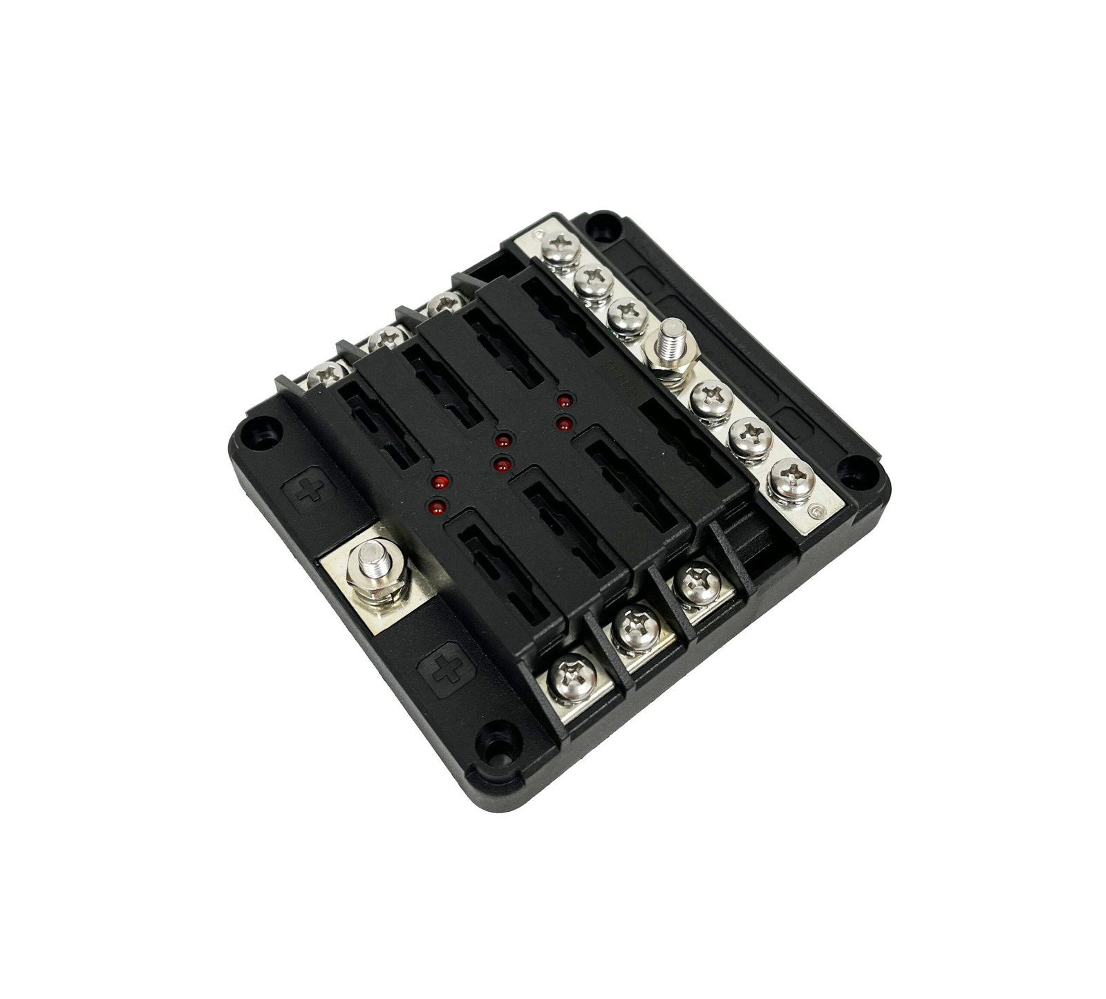 Built with an LED light for each circuit that illuminates when a circuit opens and a fuse needs to be replaced. It also comes with storage for 2 spare fuses.